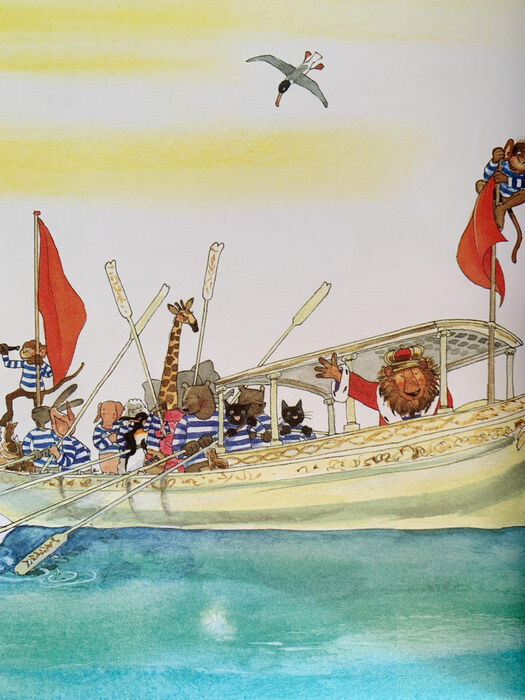 Net als de koning wat ongeduldig wordt en voordat ze kunnen uitvaren komen de laatste 2 roeiers er aan en kan de boot eindelijk vertrekken. Waar gaat de reis naar toe? De Koning mag het zeggen, hij is de baas. Naar het einde van de wereld of misschien naar Spanje? Spanned hoor, we zijn erg benieuwd. ;)) Wat een leuk boek!
