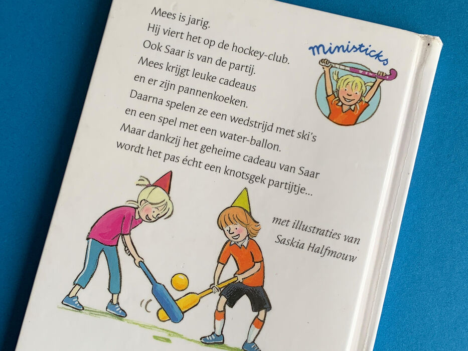 Dat de jarige Mees zijn feestje op de hockeyclub viert weten jullie al, als je de achterkant van dit boek hebt gelezen. Dat de feestvierders heel veel lol hebben met het skispel en een waterballon zie je op de foto's. Maar wat is nou toch dat geheime cadeau van Saar? Als je dat ook wil weten moet je dit leuke boek maar lezen. ;))