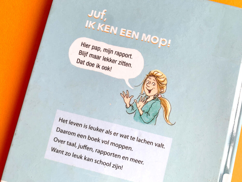 De moppen in het boek spelen zijn in en rond school af, soms neemt juffie de kinderen in de maling . Of het is juist precies andersom, want de kinderen zijn erg slim! Het is in ieder geval een succes, dit moppenboek, er wordt regelmatig - zelfs zonder aansporing! - in gelezen door onze monstertjes.