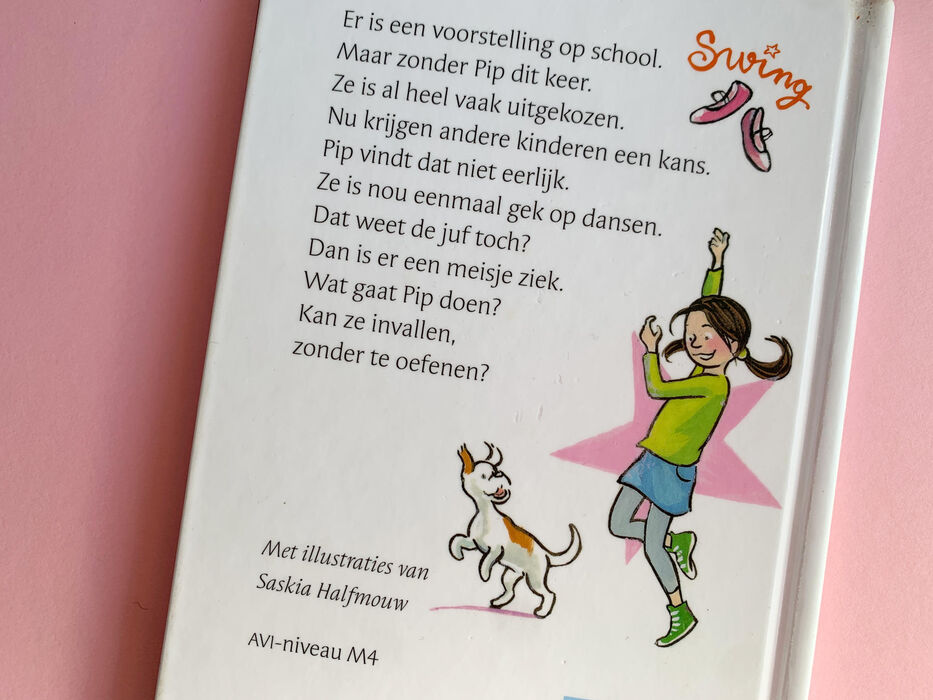 Het eerste deel van de AVI serie Swing - geschreven door Vivian den Hollander - verscheen in juli 2012. De boeken gaan over Pip, die het allerliefst wil dansen. Sinds 2012 zijn er nog 6 boeken over Pip en dansen verschenen en allemaal even leuk voor ballet jongens en meisjes. Want Pip zit op ballet maar ze houdt van alle soorten dans, zelfs van ijsdansen! Je kunt de boeken op volgorde lezen maar ook door elkaar, de delen staan op zichzelf.