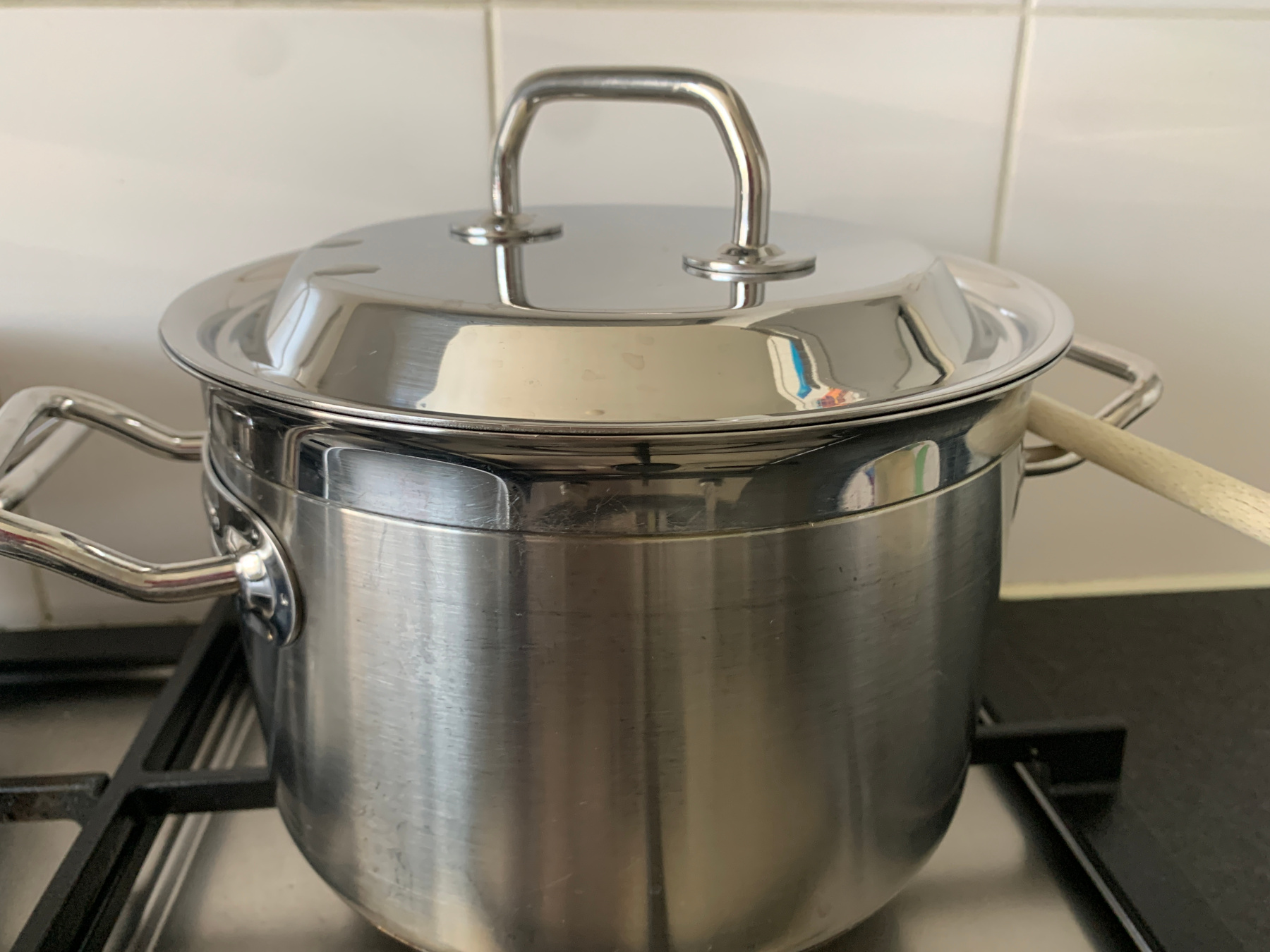 Roer alles goed door elkaar en zet de deksel op de pan.