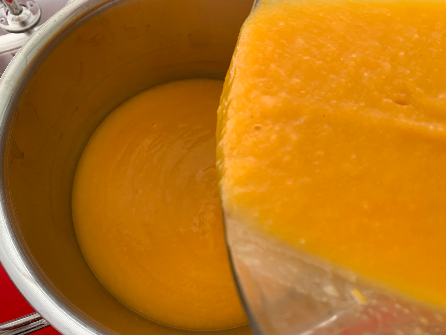 Doe de soep in de keukenmachine en pureer het mooi glad.