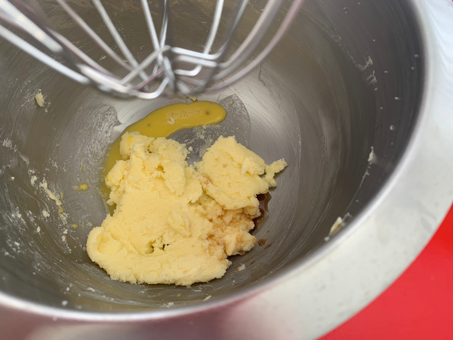 Voeg ei en vanille aan de mixer toe.