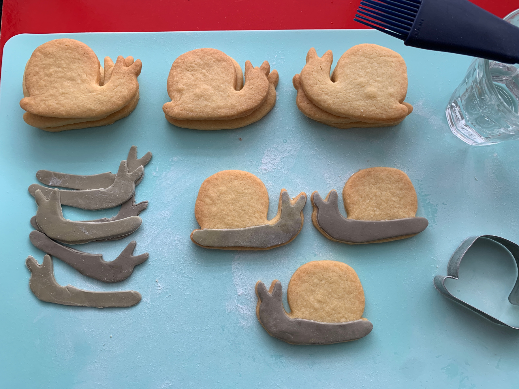 Plak de slakken op de koekjes.