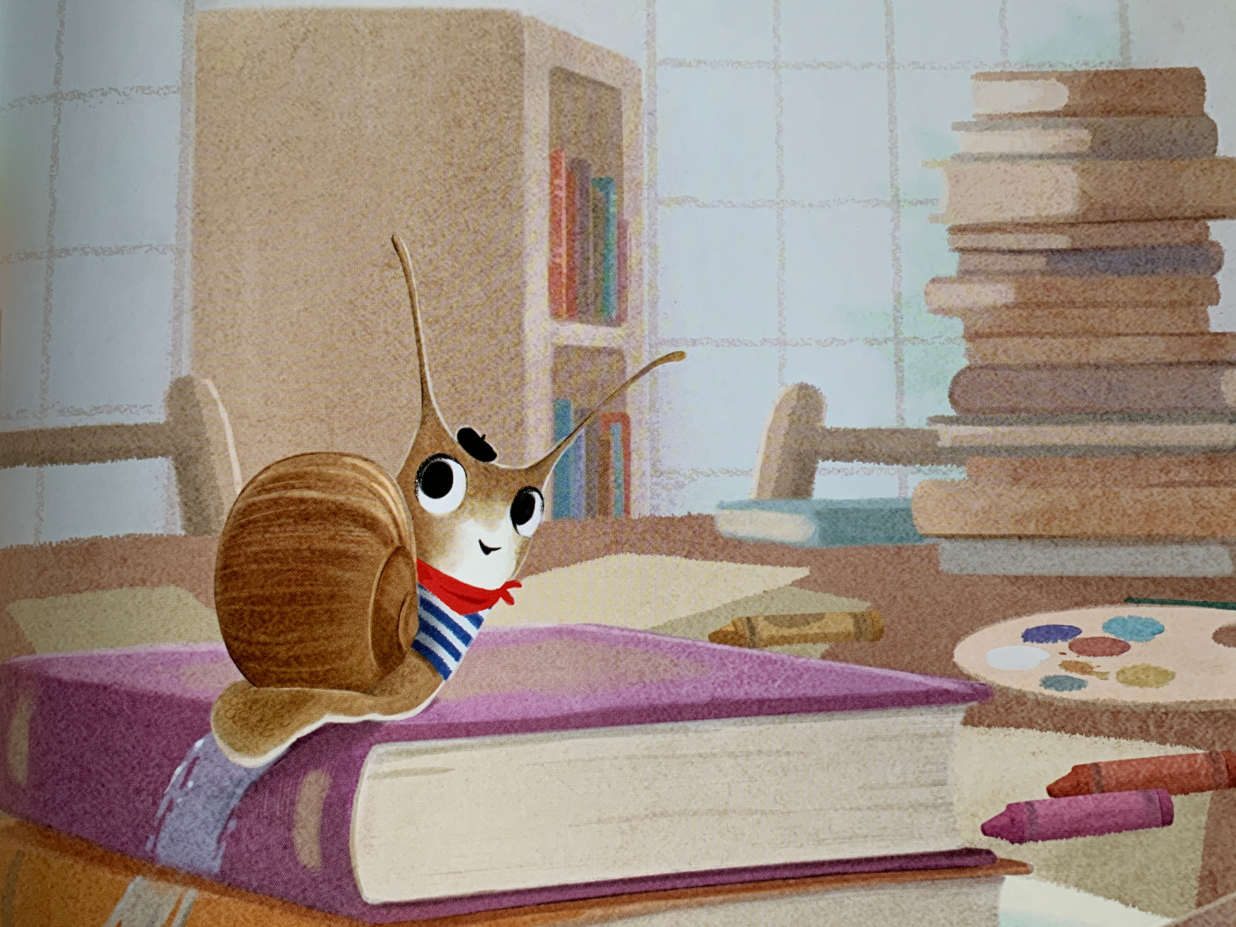 'Er zijn zoveel mooie boeken om uit te kiezen!' zegt Escargot. 'Boeken met avonturen over Superheld Honden, Cavia Detectives en Flamingo Astronautenbijvoorbeeld. Maar nu ga ik je iets vertellen dat heel erg jammer is!