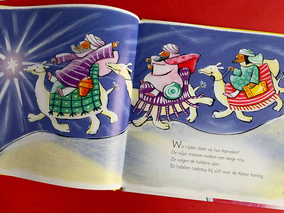 Wij lezen het boek voor op 6 januari omdat het verhaal ook over de Drie Wijzen gaat. Het is een eenvoudig prentenboek waarin het verhaal begrijpelijk wordt verteld voor jonge kinderen. Of je zelf gelovig bent of niet, het blijft een bijzonder verhaal omdat het al eeuwenlang doorverteld wordt.