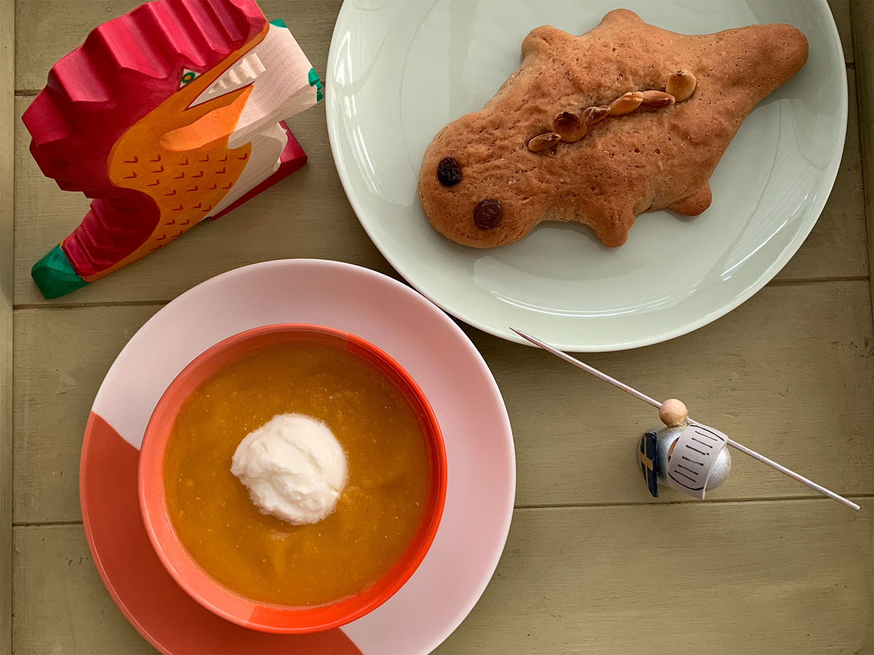 Serveer de Pompoensoep ook met Sint Michaëls feest, met de drakenbroodjes er bij